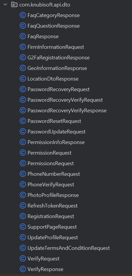 Dto module consists of generated classes(requests/responses and enums) that were described in spec module