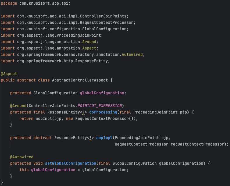 protected abstract ResponseEntity<?> aopImpl(ProceedingJoinPoint pjp, RequestContextProcessor requestContextProcessor);