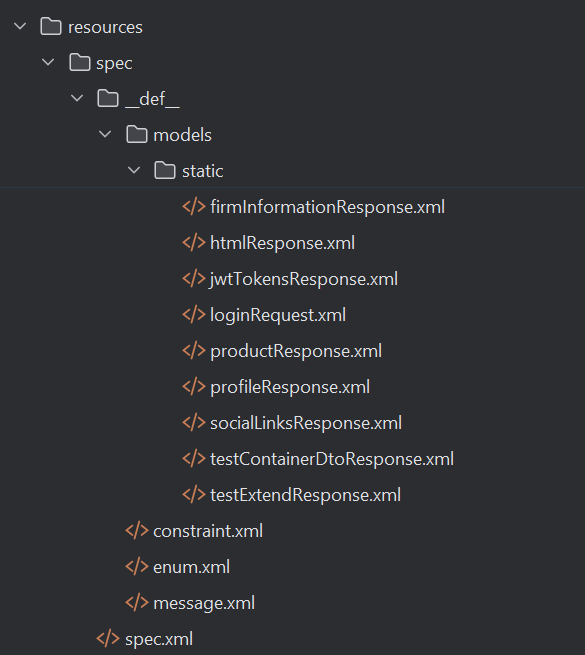 Resources have general responses/requests which can be used in other modules and contained in this way(spec/__def__/models)