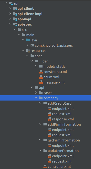 First step is to create a folder for our API in api-spec module of JBT, so our path will be api/api-spec/src/main/resources/spec/api. Here a folder named 'company' is created.